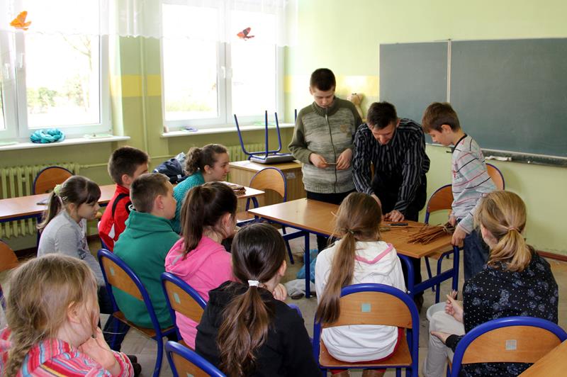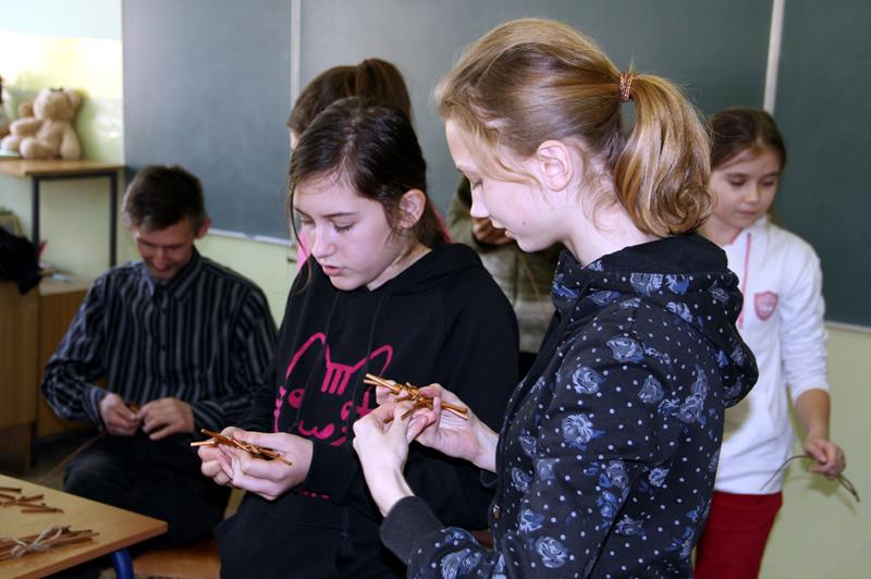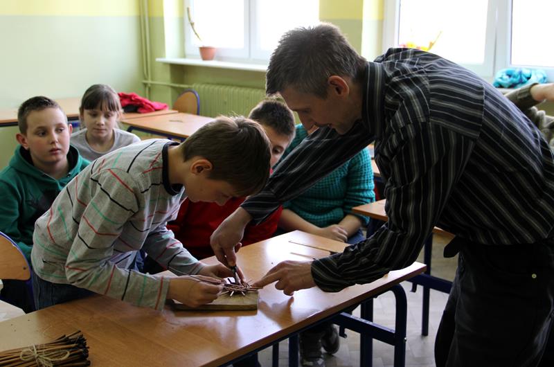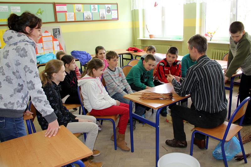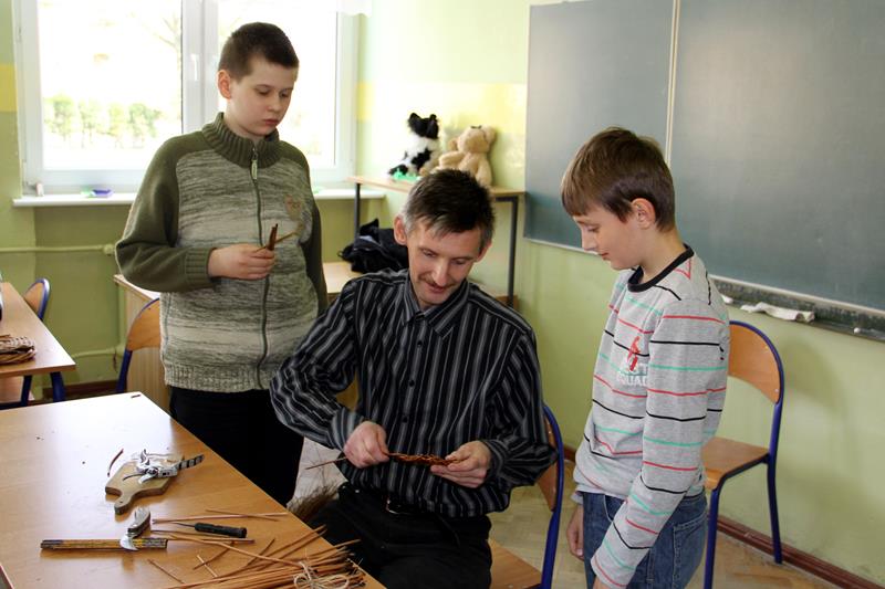 To były trzecie zajęcia porekolekcyjne w formie warsztatów przeznaczone dla uczniów z klas IV - VI SP w Drawnie. Prowadził je pan Jarosław Krasiński -specjalista wyplatania wikliny, wieloletni uczestnik warsztatów terapii zajęciowej. Pan Jarosław pomimo swojej niepełnosprawności ruchowej bardzo chętnie udziela instruktarzu wyplatania zarówno dzieci jak i dorosłych. Wcześniej prowadził zajęcia w szkołach oraz przedszkolach.Jego ponad dziesięcioletnie doświadczenie wyplatania z wikliny sprawia, że stał się dla wielu mistrzem wikliniarstwa.