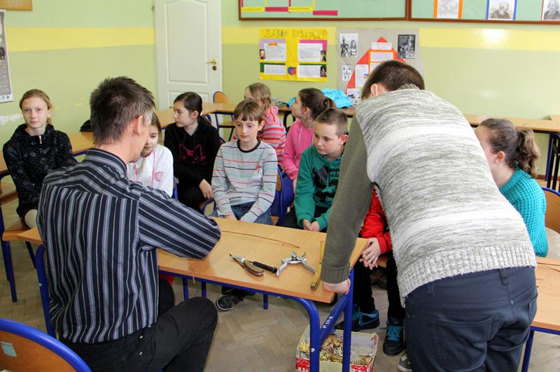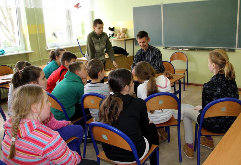 Mariusz Mieszała wraz z uczniami SP w Drawnie