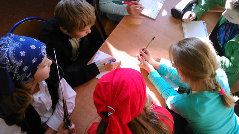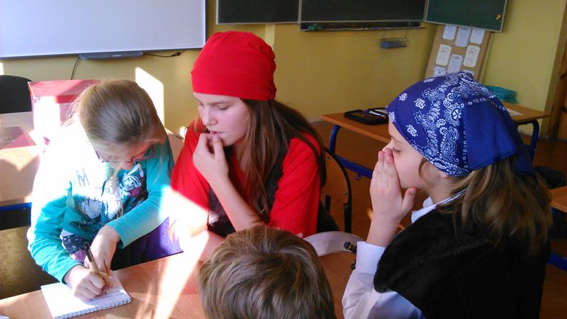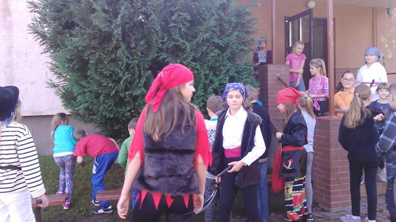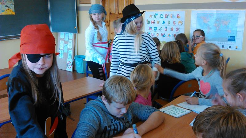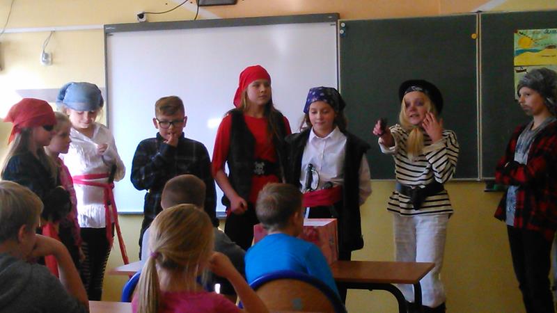 Przygotowania obchodów dni patrona rozpoczęły się w październiku, na kółku polonistycznym, prowadzonym przez panią Edytę Musiałek. Przygotowaliśmy scenariusz, mapę podróży oraz stroje. Byliśmy już gotowi na wielką, piracką przygodę. Ułożyliśmy nawet nowy tekst do melodii znanej szanty.