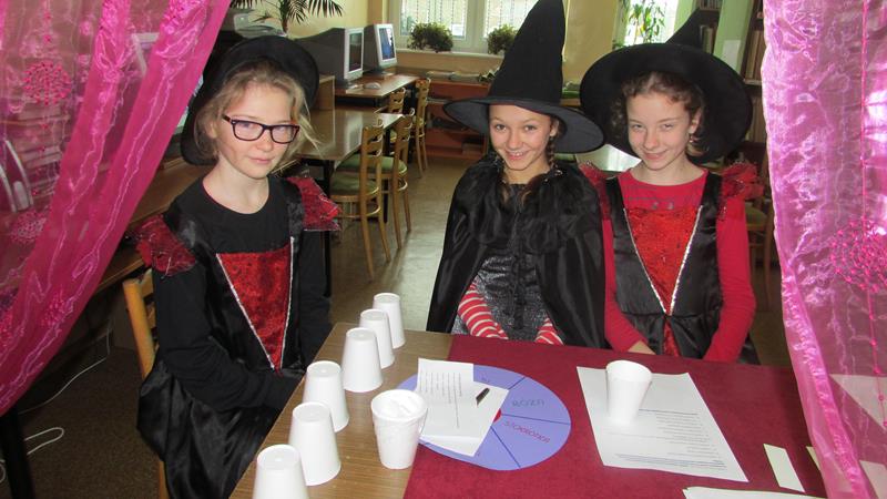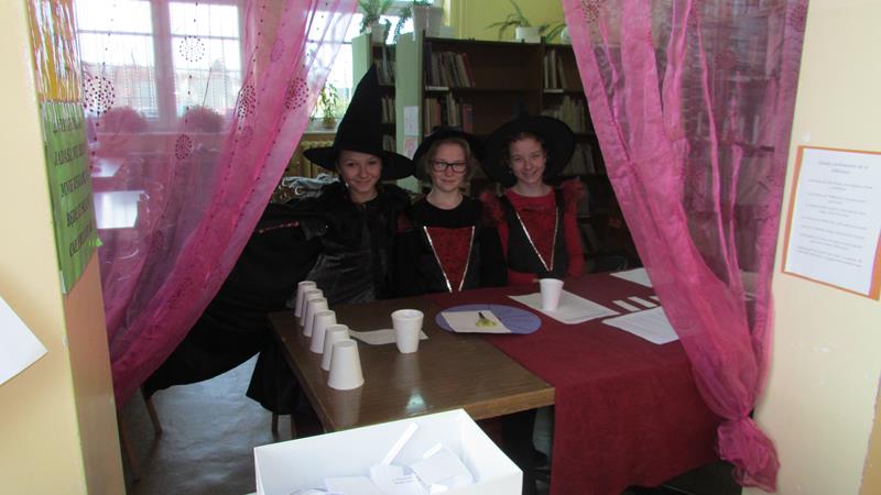 30 listopada jak przystało na Andrzeja biblioteka zamieniła się w magiczne miejsce. Dziewczęta z klasy VI a oraz Pani bibliotekarka w strojach wróżbitów przepowiadały przyszłość. Podczas wszystkich przerw lekcyjnych , każdy mógł sobie powróżyć i dowiedzieć się co go w przyszłości czeka :) : ) :)