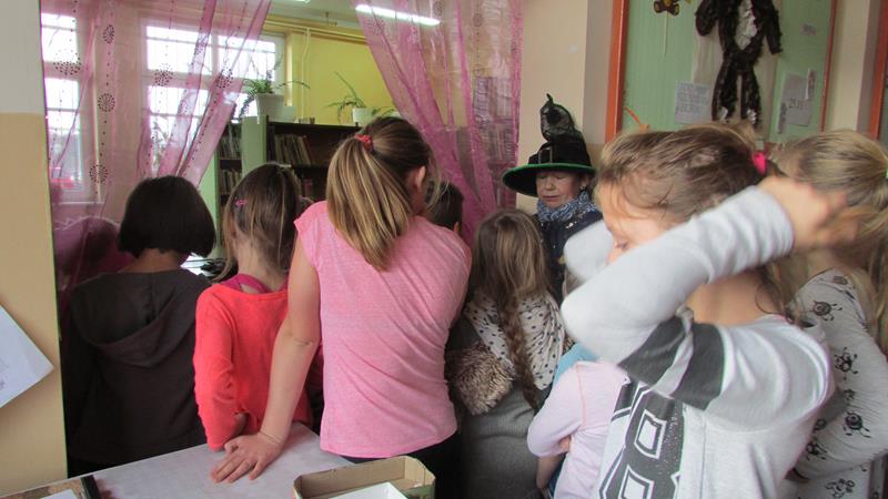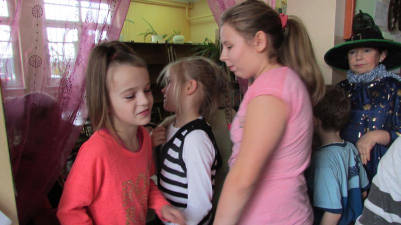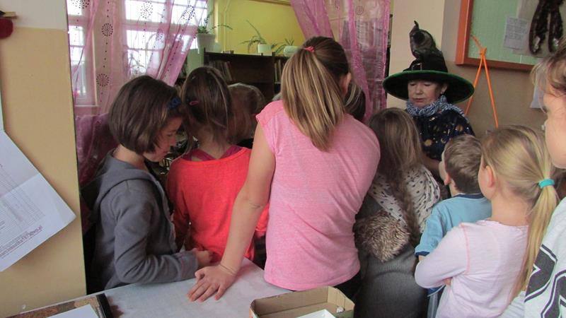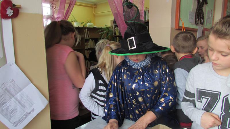 Biblioteka na każdej przerwie pękała w szwach, gdyż zainteresowanie było ogromne, co widać na zdjęciach. Czas zabawy minął tak szybko, że nawet się nie spostrzegliśmy a trzeba było już kończyć . Wszyscy pożegnali się i podziękowali za wspólną zabawę mając nadzieję na kolejne tak radosne spotkanie.
