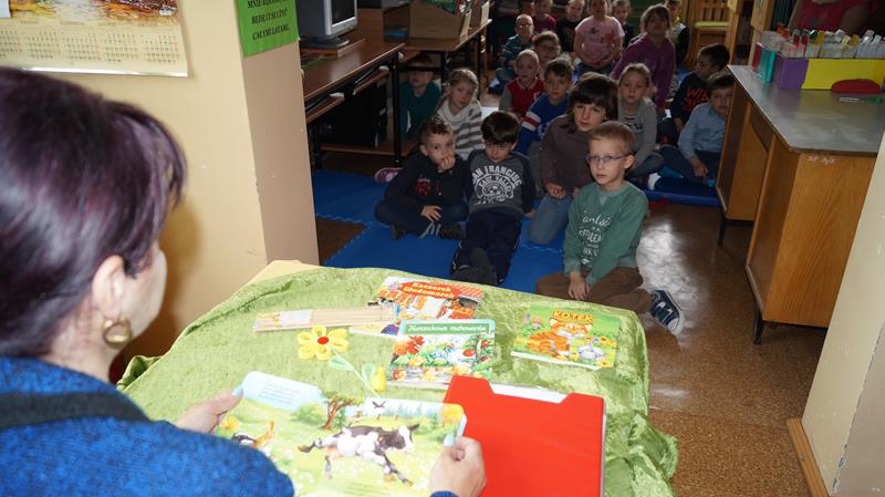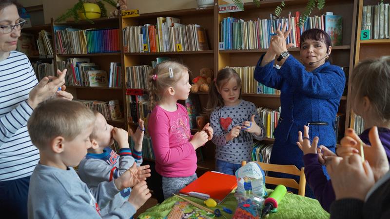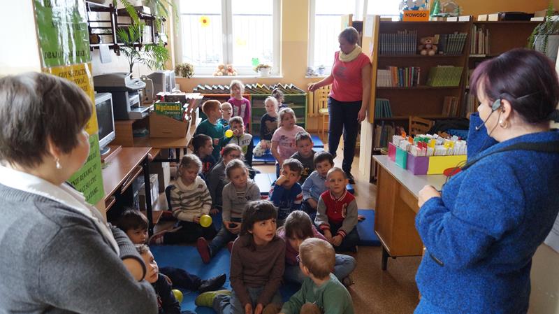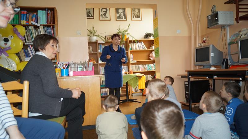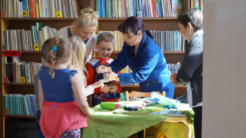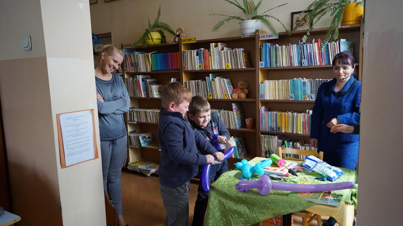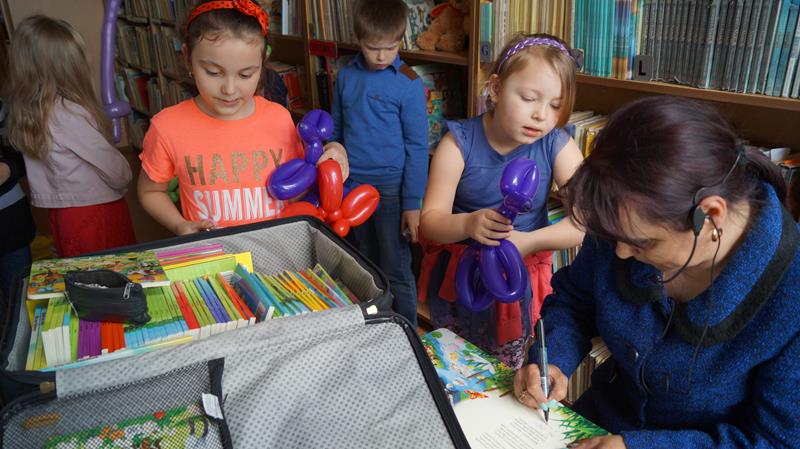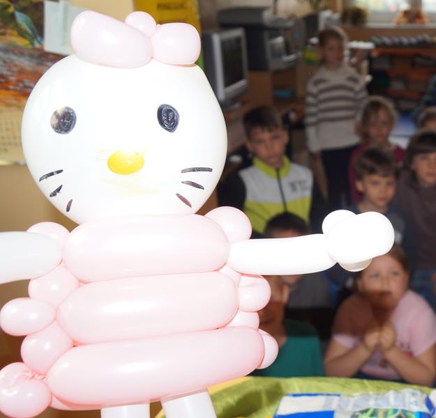 Na wstępie pisarka prezentowała swoje książki, czytała fragmenty, jak również zachęcała dzieci do czytania rymowanek. Pani Katarzyna przedstawiła także drugą swoją pasję, czyli tworzenie różnych kształtów z balonów oraz wskazała dzieciom kilka interesujących sztuczek z gumką do włosów i przekuwania balonów tak, aby nie pękły.