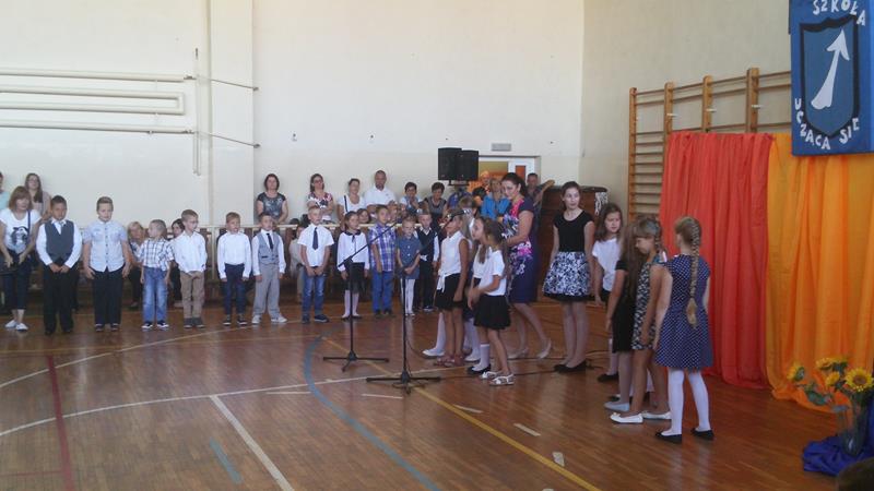 Na uroczystość, oprócz licznie zgromadzonych rodziców, przybyli zaproszeni goście na czele z panem Andrzejem Chmielewskim burmistrzem gminy. Pan burmistrz przekazał uczniom i rodzicom bardzo ważną informację. Otóż od obecnego roku szkolnego, począwszy od klas IV, wprowadzona została obowiązkowa nauka drugiego języka obcego podobnie jak to jest w innych szkołach naszego powiatu. Dzięki tej decyzji nasi uczniowie w przyszłości mieć będą wyrównane szanse.
