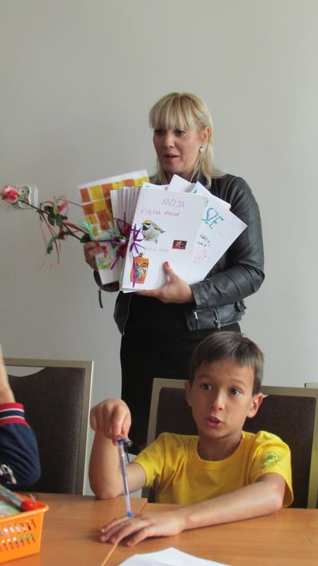 Czwartek 29 września 2016 .r był dniem, kiedy na zaproszenie Miejskiej Biblioteki Publicznej w Drawnie, z klasą III b uczestniczyliśmy w warsztatach pt. „Książka Marzeń”. Zajęcia prowadziła pani Monika Sawicka, która jest pisarką i dziennikarką. Celem warsztatów było stworzenie własnej książki z marzeniami, do których będą dążyć w życiu oraz postawienie sobie pytania, co trzeba zrobić, aby spełnić te marzenia. Pani Monika towarzyszyła dzieciom w procesie powstawania tych niepowtarzalnych egzemplarzy, do których będą mogły zajrzeć po latach, gdyż zostały one zdeponowane w Bibliotece Miejskiej. Na zakończenie warsztatów, Mateusz Musiałek podziękował pani Monice za spotkanie i wręczył różę.
