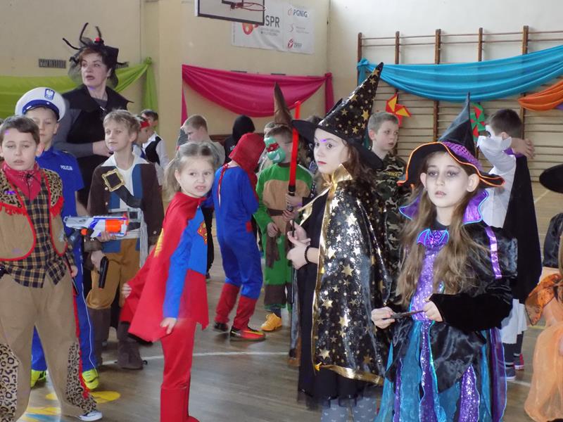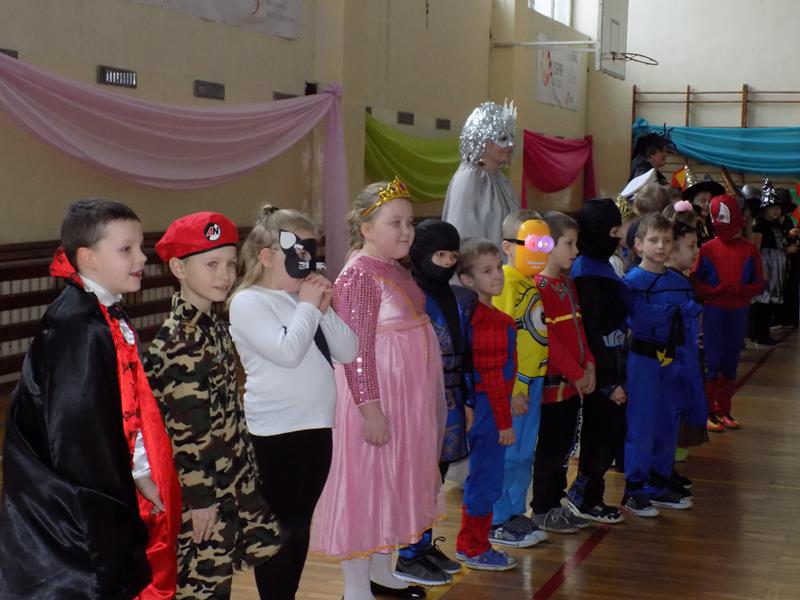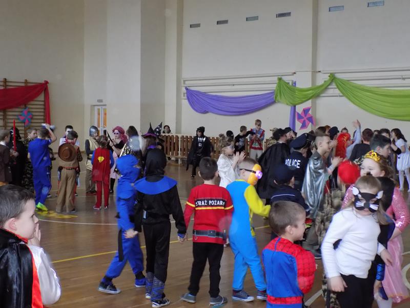 Jak karnawał , to karnawał, a w karnawale różne bale, dlatego zgodnie z tradycją w naszej szkole 19 stycznia 2017r. odbył się BAL PRZEBIERAŃCÓW. W godzinach przedpołudniowych hala gimnastyczna zapełniła się uczniami klas I-III pięknie przebranymi za różne postaci z bajek, baśni, filmów i nie tylko, a w godzinach popołudniowych uczniowie klas IV-VI równie pięknie przebrani bawili się na całego. Wychowawcom również udzielił się radosny nastrój i wszystkie panie przebrały się tak, że uczniom trudno było rozpoznać „swoją panią”.