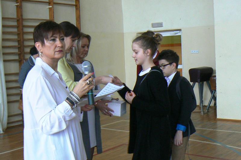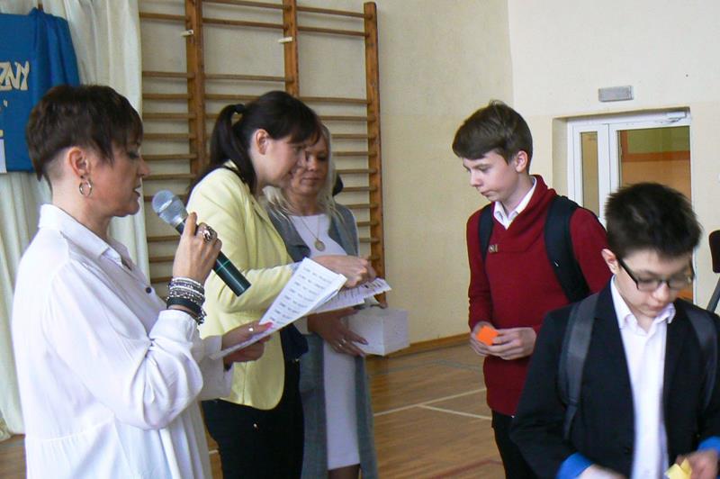Matematyczne potyczki uczestników konkursu zaczęły się od losowania miejsc i kodowania testów. Następnie Pani dyrektor Jolanta Fatalska przywitała wszystkich gości a przede wszystkim uczestników i ich opiekunów. Na koniec wszystkim życzyła powodzenia w matematycznych zmaganiach.