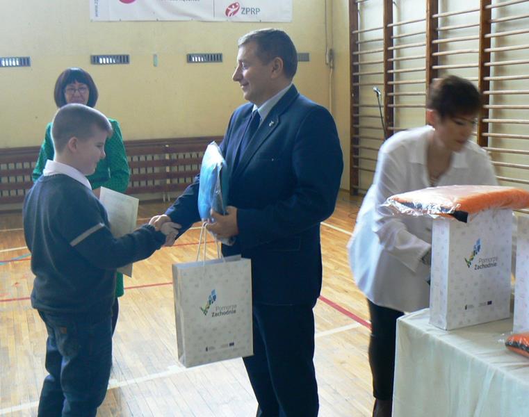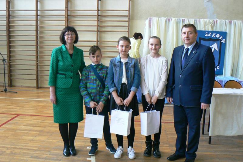 Nagrody, upominki i pamiątkowe dyplomy dla laureatów konkursu zostały wręczone przez pana Andrzeja Chmielewskiego - Burmistrza Drawna i panią dyrektor Jolantę Fatalską.