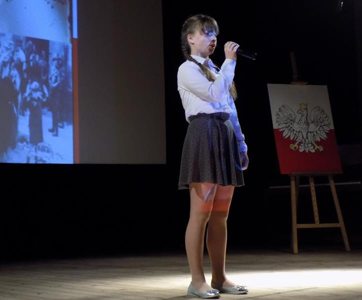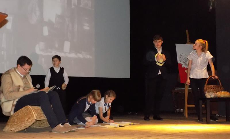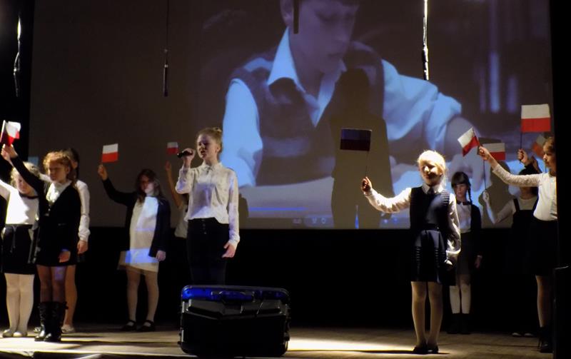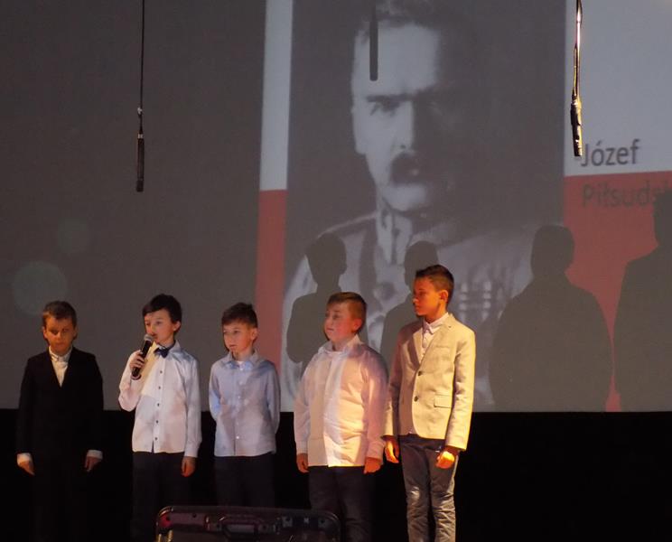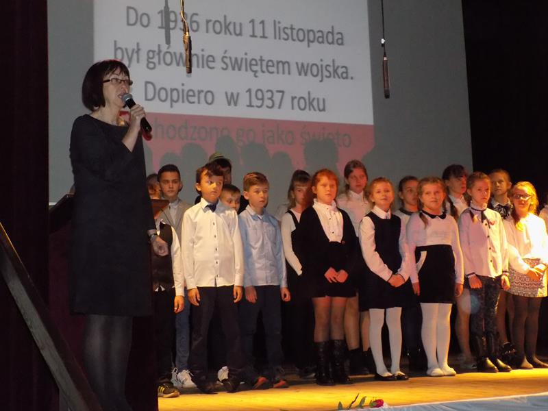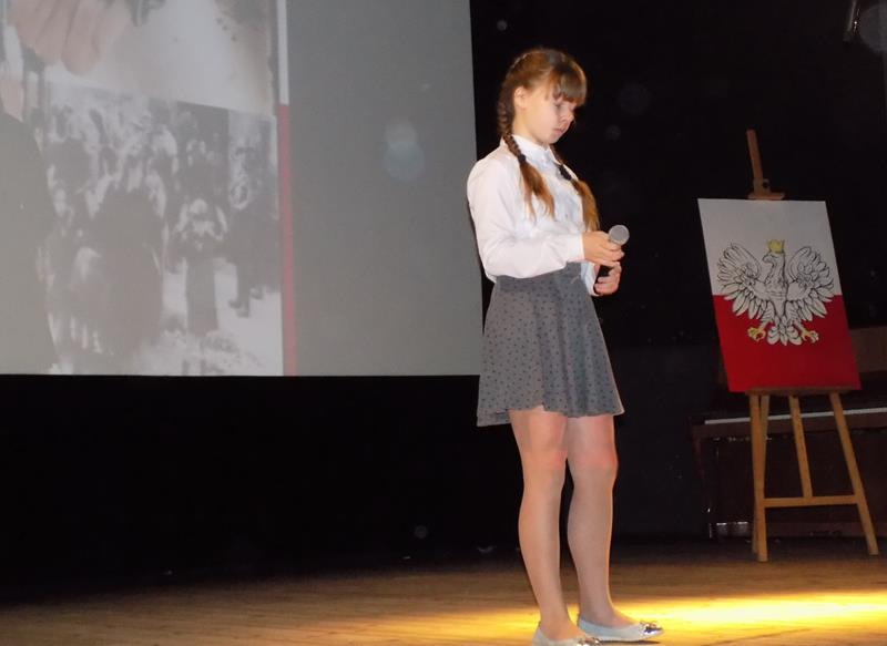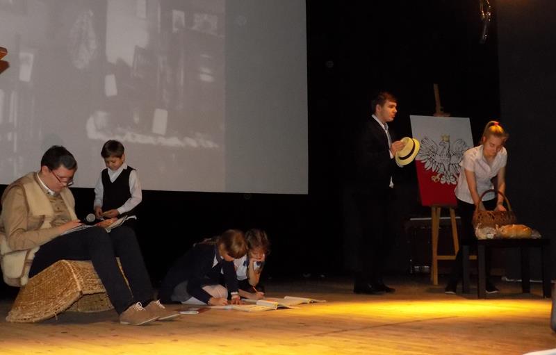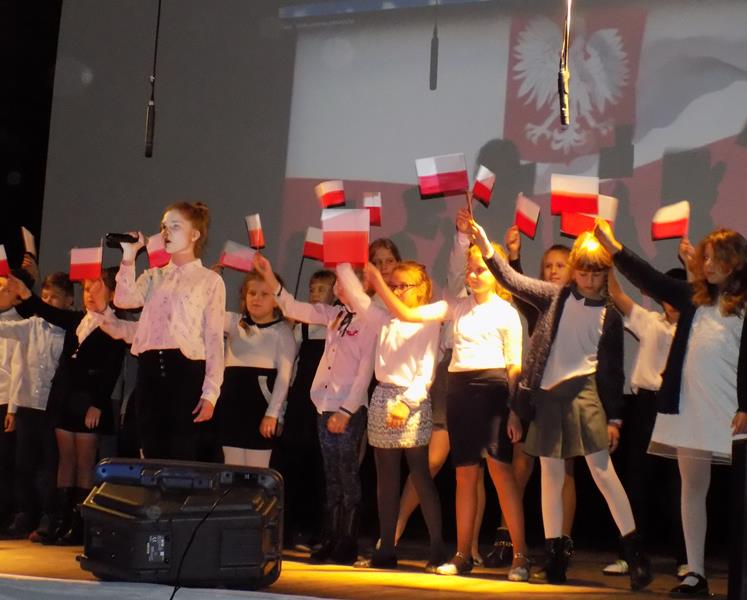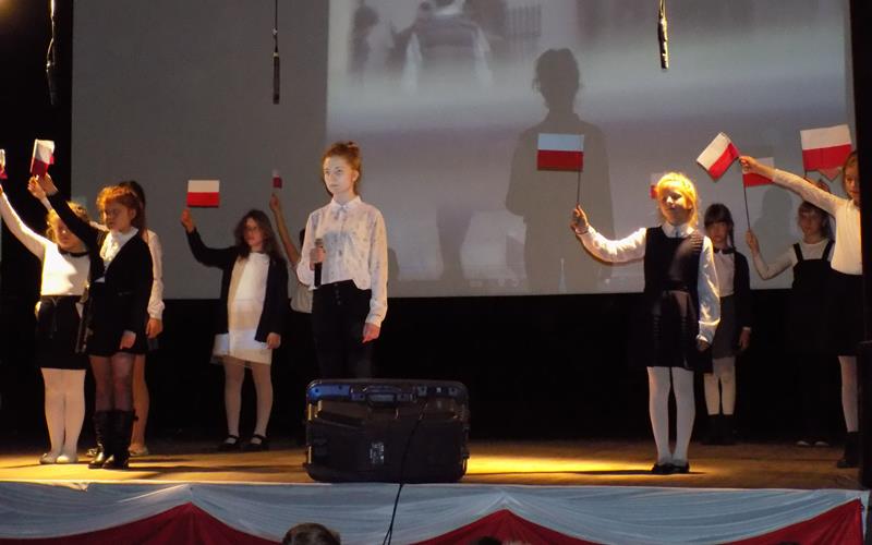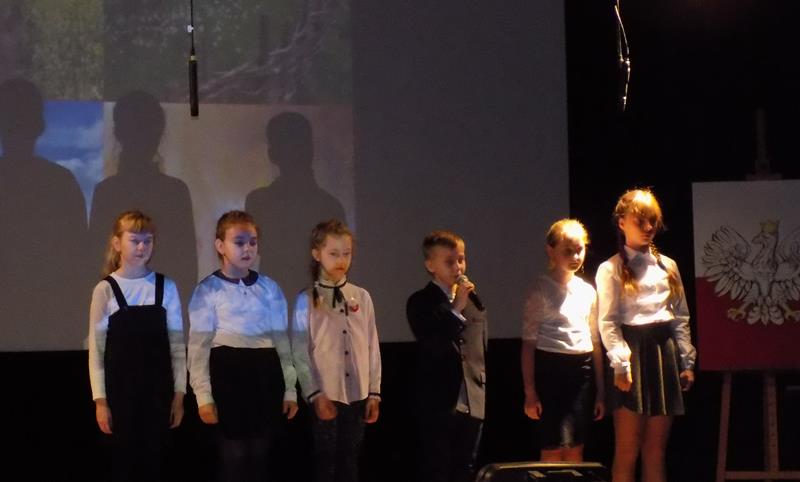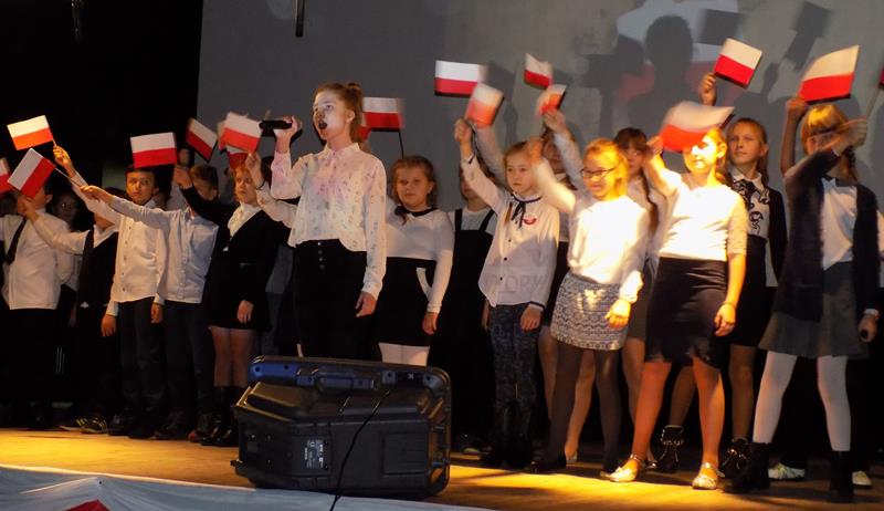 Scenariusz montażu słowno - muzycznego obejmował treści historyczne, pieśni i wiersze. W bardzo ciekawy i obrazowy sposób przedstawiono losy naszej Ojczyzny, począwszy od zaborów, a skończywszy na roku 1918. Występ uświetniony został grą na skrzypcach przez uczennicę klasy VIIa – Hannę Bruzi.