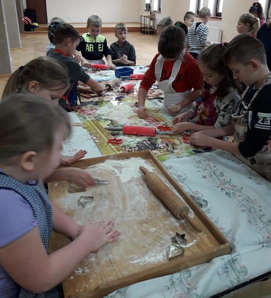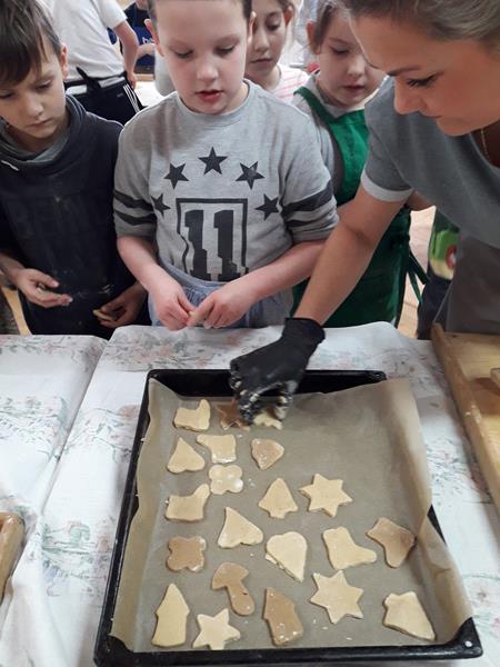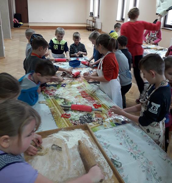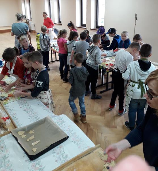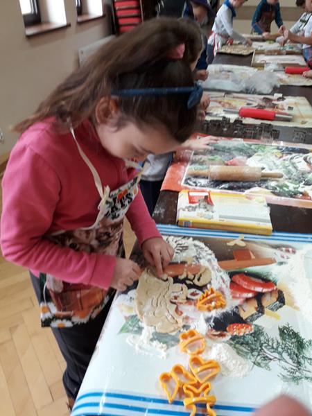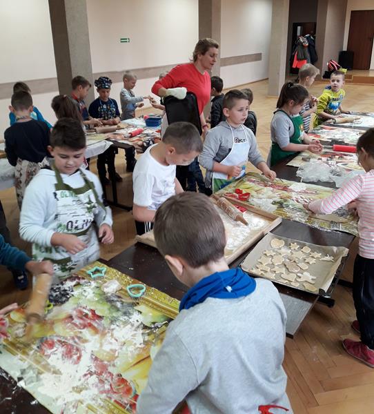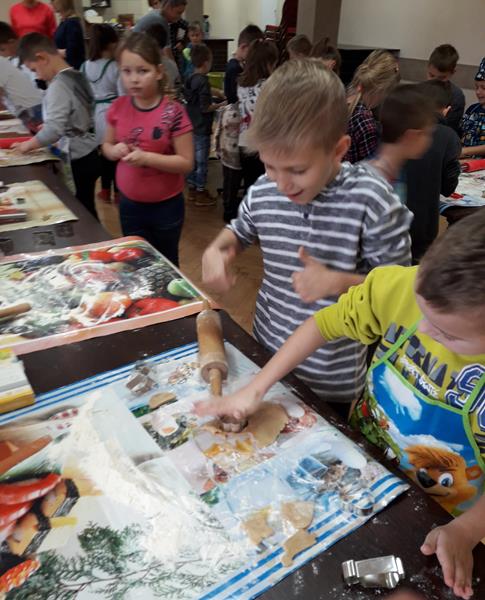W związku z tym klasy IIa i IIIa wzięły udział w przepysznie pachnących zajęciach pieczenia pierników .Dzieci wraz z wychowawcami udały się do DOK. Ubrani w fartuszki, czepki , uzbrojeni w foremki do ciastek ,pełne zapału zabrały się do pracy.