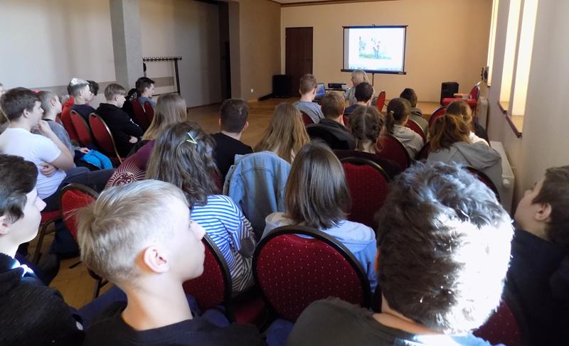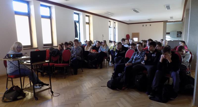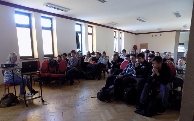 23 listopada uczniowie z klas gimnazjalnych mieli przyjemność uczestniczenia w spotkaniu autorskim z Magdą Omilianowicz - reporterką , autorką książek i artykułów o tematyce społecznej i podróżniczej. Autorka opowiadała o swoich książkach oraz o wielkiej pasji, jaką jest podróżowanie. Opowiadała również o bohaterkach swoich zbiorów reportaży „Przekraczające granice” i innych. Prezentowała nam kobiety niezwykłe, odważne z bogatymi bagażami doświadczeń, oryginalne, nietuzinkowe, które przekraczają wszelkie granice. Swoje opowieści wzbogacała pięknymi zdjęciami, które zachęcały do podróżowania. Na zakończenie spotkania odpowiadała na pytania uczniów, którym nie było końca.