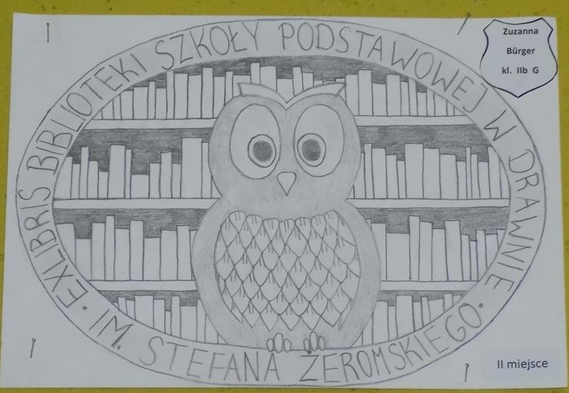 Pod koniec listopada został rozstrzygnięty szkolny konkurs na Exlibris biblioteki szkolnej Szkoły Podstawowej im. Stefana Żeromskiego w Drawnie. Celem tego konkursu było stworzenie graficznego znaku własnościowego dla zbiorów naszej biblioteki oraz kształtowanie upodobań artystycznych poprzez rozwijanie umiejętności plastycznych. W konkursie mogli wziąć udział uczniowie z klas VI, VII, II i III G. Kryteria jakimi kierowało się jury przy wyborze najlepszych prac to: oryginalność pomysłu, estetyka wykonania, bezpośrednie nawiązanie do tematyki szkolnej i bibliotecznej, walory artystyczne i trafny dobór treści. Do organizatorów konkursu wpłynęło bardzo dużo prac, jednak zasady konkursu są takie, że trzeba wyłonić najlepszych.
