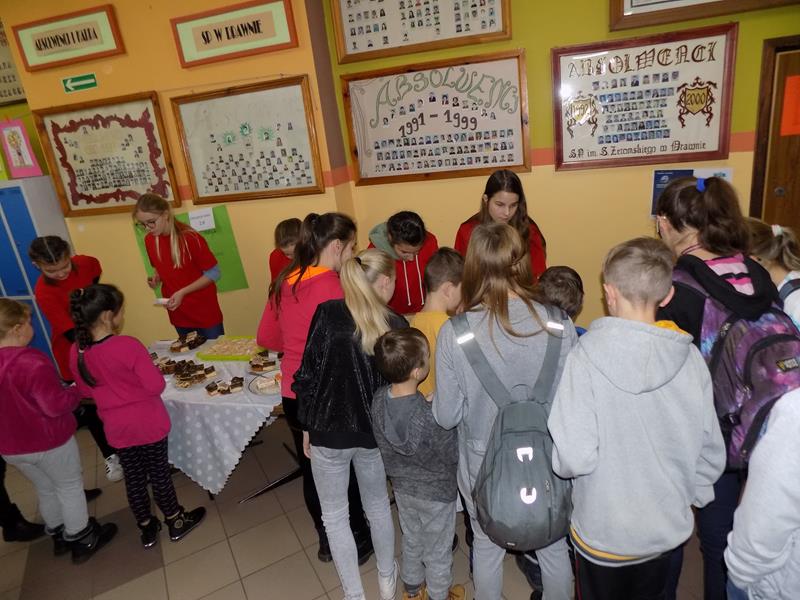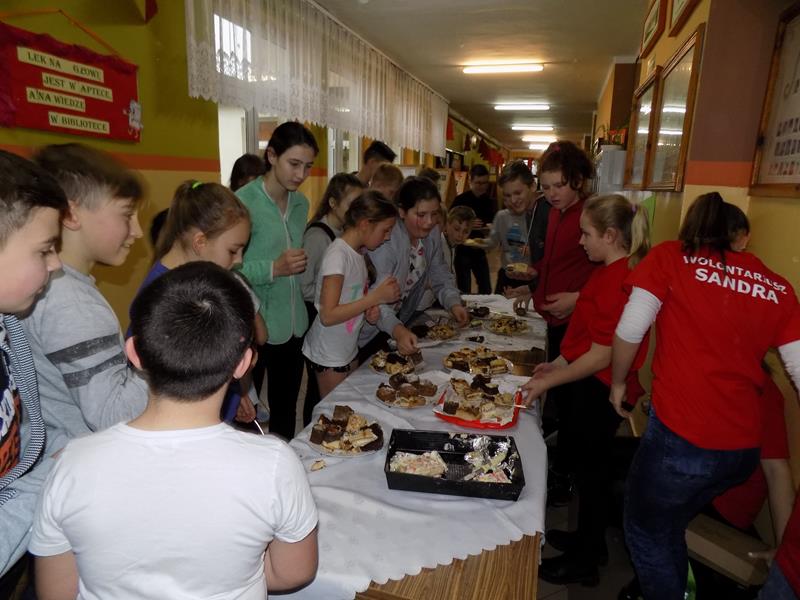 Dnia 5 grudnia w naszej szkole zorganizowany został słodki kiermasz charytatywny przy okazji Międzynarodowego Dnia Wolontariusza. Inicjatorami zbiórki było Szkolne Koło Wolontariatu oraz Szkolny Samorząd Uczniowski. Upieczeniem słodkości zajęli się chętni wolontariusze oraz przedstawiciele poszczególnych klas. W tym dniu można było zakupić porcję ciasta za symboliczne 2 złote. Zebrane fundusze przekazane zostaną na szczytny cel. Bardzo dziękujemy za zaangażowanie się w akcję oraz kupno ciasta.