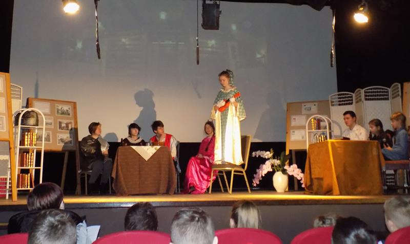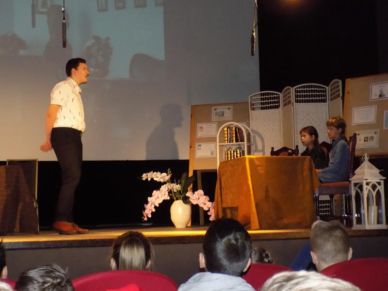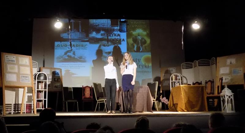 Dnia 12 stycznia br. uczniowie i nauczyciele naszej szkoły mieli okazję zobaczyć przedstawienie o Henryku Sienkiewiczu przygotowane przez szkolne koło teatralne, które prowadzę. Sztuka została przygotowana z okazji podsumowania mijającego roku Sienkiewicza. Był nim rok 2017. Wszystko to się odbyło w Drawieńskim Ośrodku Kultury, w sali kina „Wedel”.