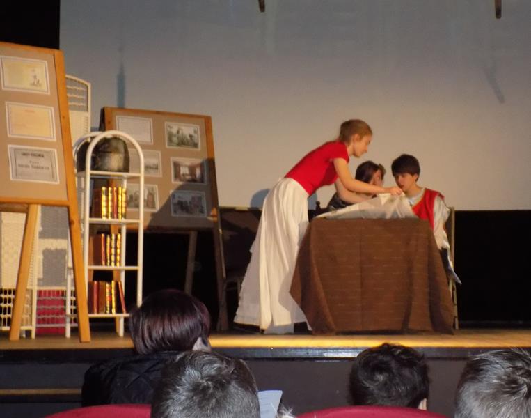 Spektakl składał się z dwóch części. W pierwszej części zobaczyliśmy wnętrze muzeum H. Sienkiewicza w Woli Okrzejskiej. Tam kustosz, Szymon Kruk, w stylizowanej na wnętrze muzeum scenie, opowiedział historię życia i twórczości pisarza odwiedzającym muzeum dzieciom- Gabrysi Lewandowskiej i Julii Żabeckiej. W między czasie dzieci mogły zobaczyć dwie scenki z powieśći H. Sienkiewicza. Pierwsza rekonstrukcja dotyczyła fragmentu powieści „W pustyni i w puszczy”. Zagrali w niej: Michał Bilski- Staś, Michasia Michniewicz- Nel, Maria Rzeźniewska- Kali. Druga scenka ukazywała ślubowanie w gospodzie „Pod Lutym Turem” z „Krzyżaków”. I tu mieszczanina grała Diana Wojtowicz, Maćka- Maria Rzeźniewska, Zbyszka- Michał Bilski, Danusię- Hania Dziatko, księżną Annę Danutę- Aneta Myślińska, karczmarza- Asia Żabicka. Gdy ta część przedstawienia się zakończyła, a dzieci z kustoszem poszły zwiedzać inne sale muzeum, na scenie pojawiła się dziennikarka- Asia Żabicka, która została wysłana przez przełożonego do Woli Okrzejskiej, by napisać artykuł do gazety. Ku jej zdumieniu, przybył do niej duch pisarza (grał go Jakub Wiśniowski), który w dłuższej rozmowie polemizował z pisarką na temat wartości, które on wyznawał i ukazał w sowich książkach, a tych, które reprezentuje pokolenie dziennikarki, pokolenie XXI wieku. Na scenie pojawiła się też Diana Wojtowicz, która zagrała pierwszą żonę pisarza. Na tym przedstawienie się zakończyło.