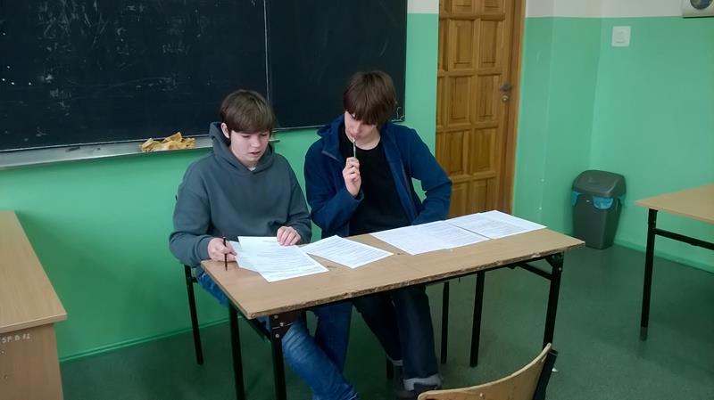 Przy organizacji konkursu pomagali dwaj uczniowie klasy III b G - Michał Bilski i Jakub Wiśniowski, którym bardzo serdecznie dziękuję.