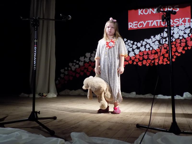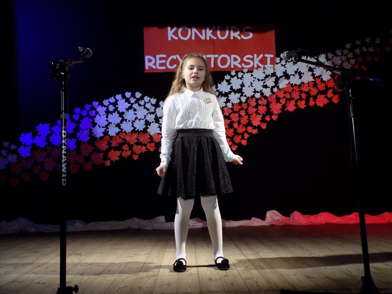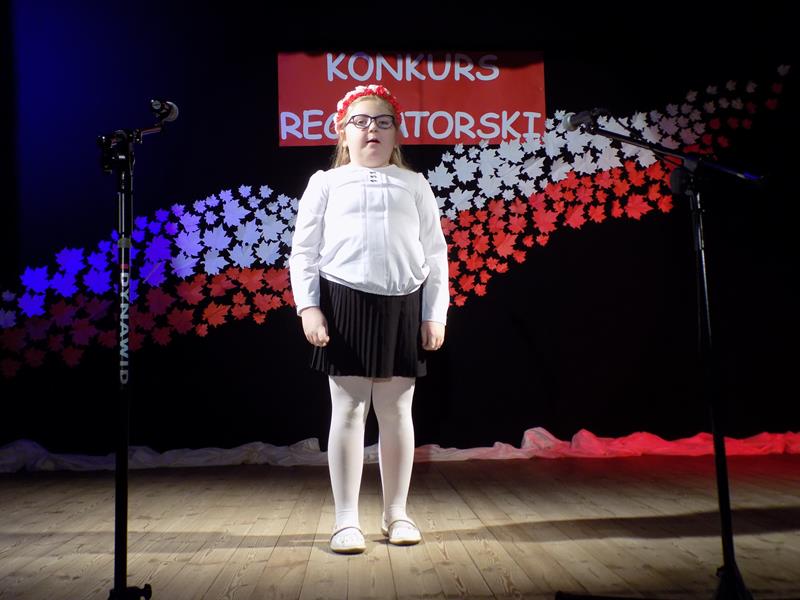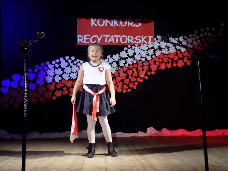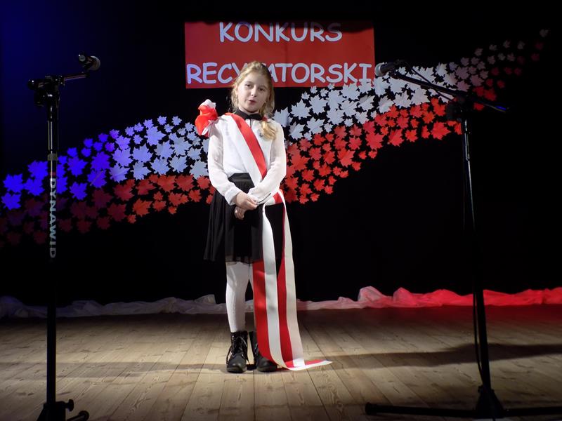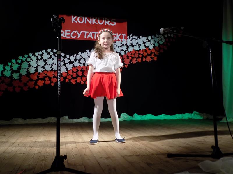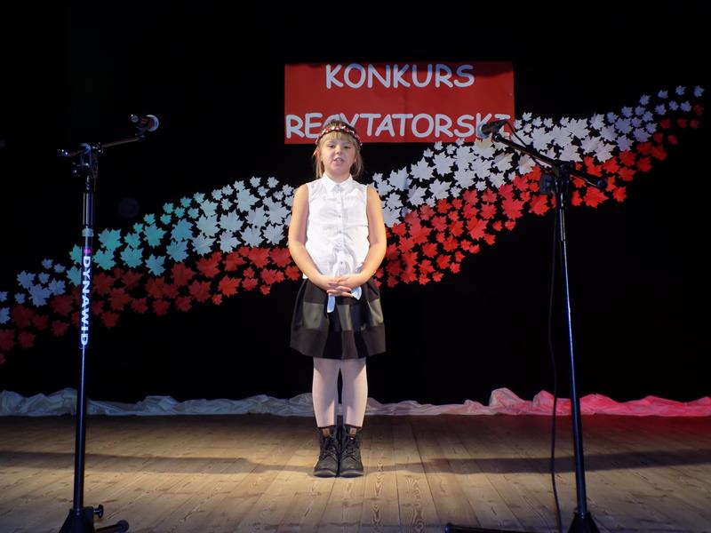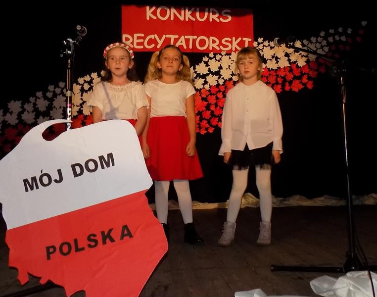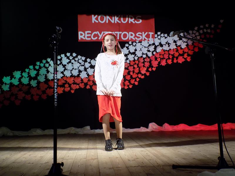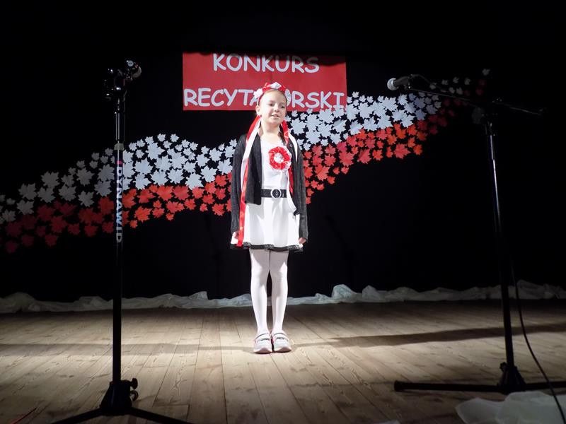 W oczekiwaniu na wyniki konkursu uczniowie wysłuchali programu artystycznego z okazji 100 -lecia niepodległości w wykonaniu uczniów klas II i Ia.