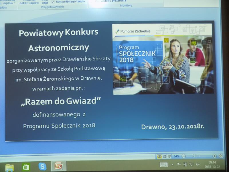 Dnia 23 października 2018r. w Szkole Podstawowej w Drawnie odbył się konkurs astronomiczny dla uczniów klas VI – VIII szkoły podstawowej oraz klasy III gimnazjalnej uczęszczających do szkół na terenie powiatu Choszczeńskiego.