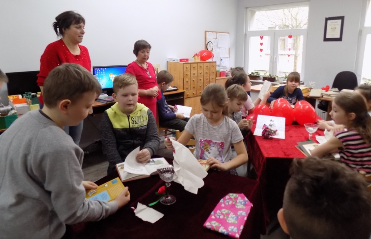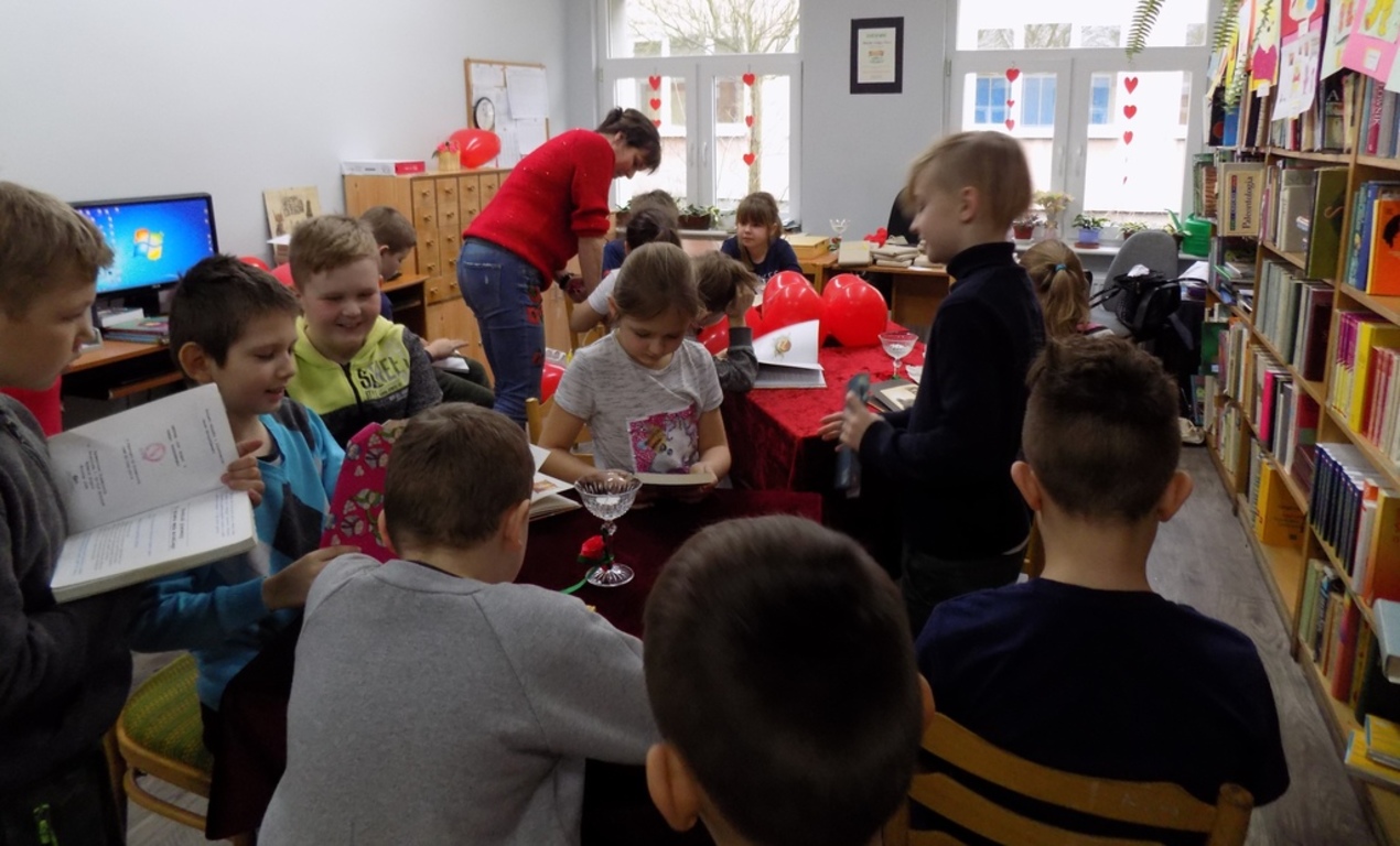 Podczas trwającej akcji został zaprezentowany dla uczniów kl I b, IIa teatrzyk kamishibai pt „Rower Walentynki”. Spotkanie to było dobrą okazją do rozmów o przyjaźni, koleżeństwie i sympatii .