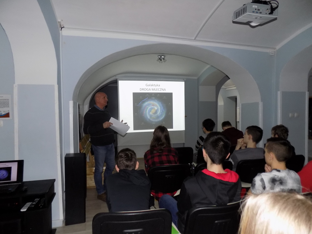 Dnia 26 marca 2019r. klasy: V c, VII a, VII b, VIII a, VIII b uczestniczyły w zajęciach astronomicznych zorganizowanych w Jaskini - Centrum Edukacji Przyrodniczej - Krainie Żywej Wody. Zajęcia poprowadził pan Zbyszek Cielecki. Spotkanie odbyło się dzięki Europejskiemu Funduszowi Rozwoju Obszarów Wiejskich.