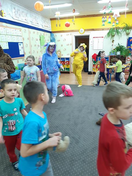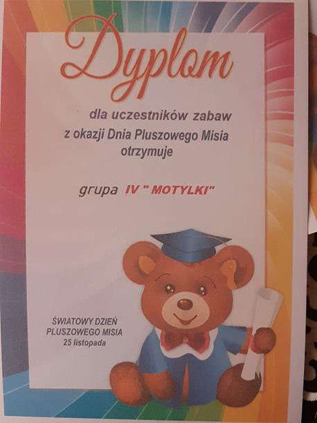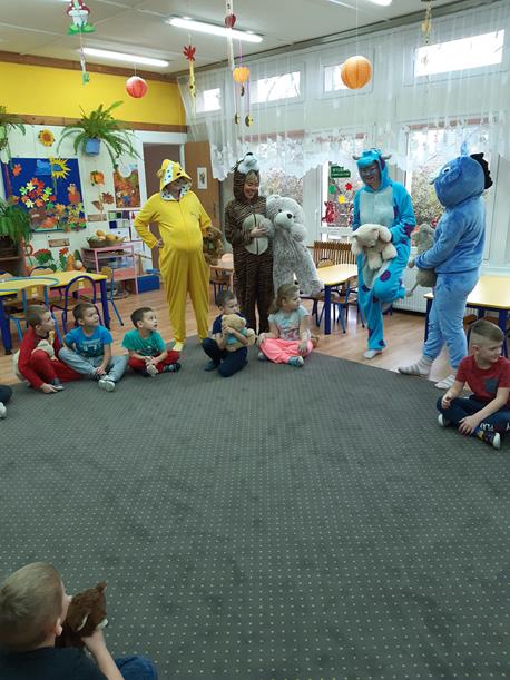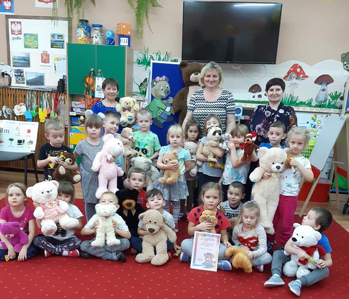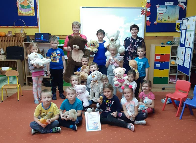 Aby uczcić to wspaniałe święto, panie z biblioteki szkolnej Dorota Konopelska i Elżbieta Koziorowska udały się do Przedszkola Miejskiego w Drawnie, by przeprowadzić misiowe zabawy z dziećmi. Były tańce z misiami, tworzenie prezentów, zabawy z muzyką oraz przytulanki. Na zakończenie zajęć, każda grupa otrzymała pamiątkowy dyplom i małe, słodkie co nieco.