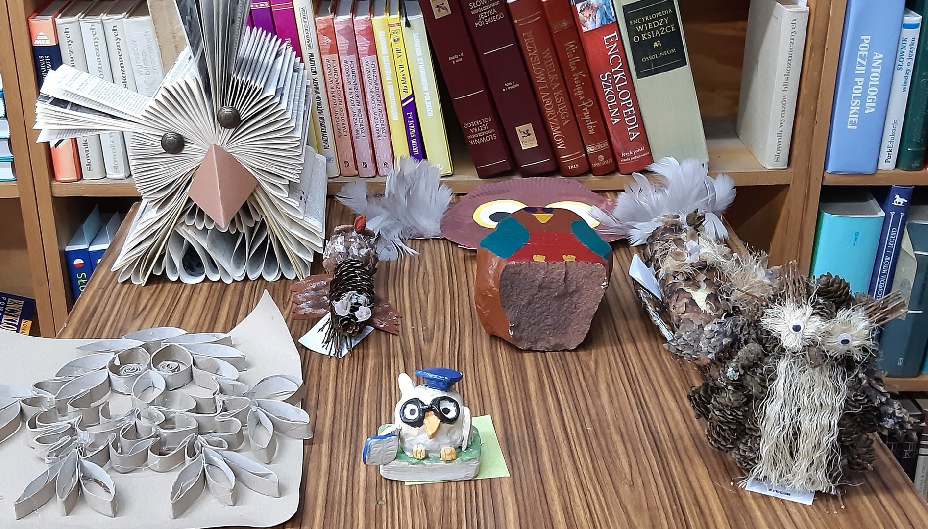 Zadaniem uczestników konkursu było wykonanie sowy (ptaka kojarzonego z mądrością, książką i biblioteką) dowolna techniką z użyciem dowolnych materiałów.