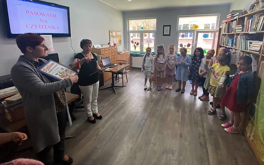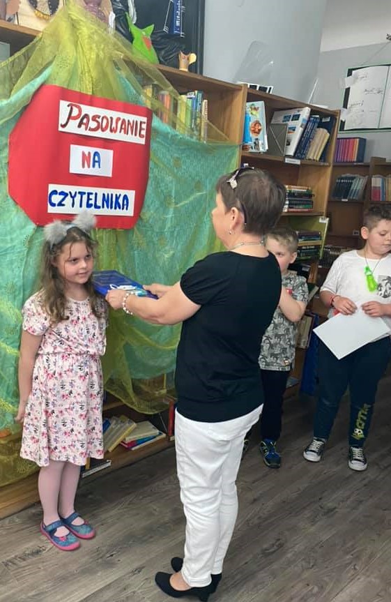 Pasowanie na czytelnika to oficjalne przyjęcie uczniów do grona czytelników biblioteki. Zanim jednak uczniowie złożyli swoje przyrzeczenie musieli wykazać się wiedzą o książkach i bibliotece, z czym poradzili sobie znakomicie.