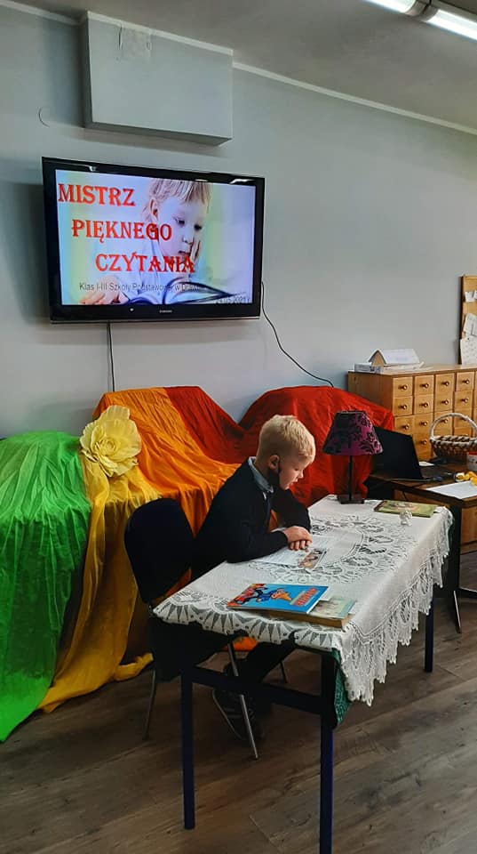 W poniedziałek ,24 maja, odbył się w naszej szkole konkurs czytelniczy,zorganizowany przez nasze bibliotekarki, ,,Mistrz pięknego czytania".Uczestniczyli w nim najlepiej czytający reprezentanci klas 1-3 ,wyłonieni wcześniej w eliminacjach klasowych. Komisja w składzie: Pani dyrektor szkoły- Joanna Markiewicz- przewodnicząca, Pani Izabela Kowalczyk- dyr DOK,Pani Małgorzata Dolata-Trzaskawka- polonista SP Drawno,Pani Emilia Wojtowicz- Biblioteka Publiczna w Drawnie, wysłuchała 14 uczestników i wyłoniła zwycięzców.