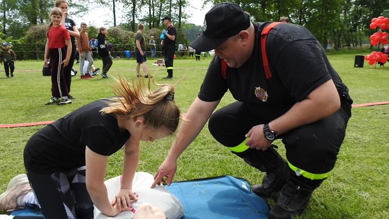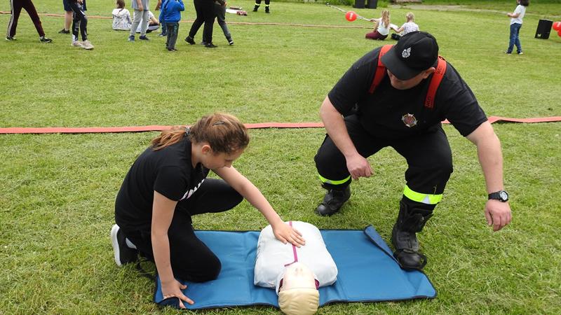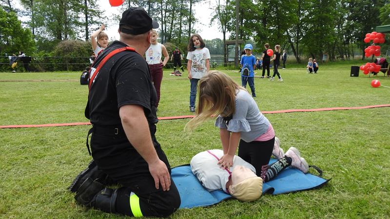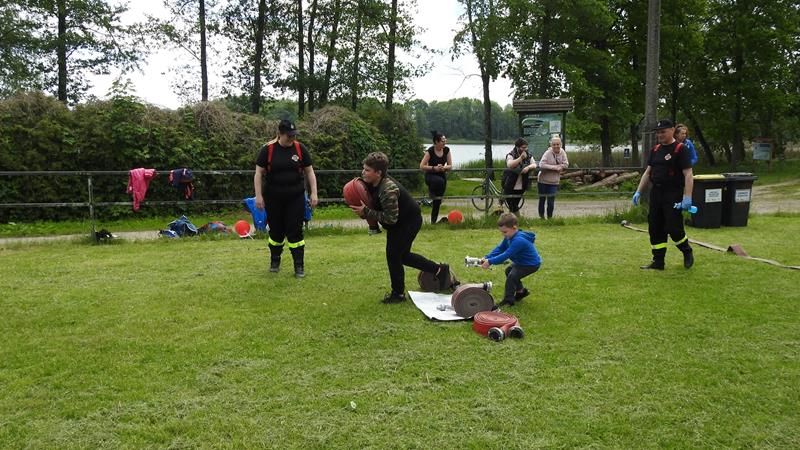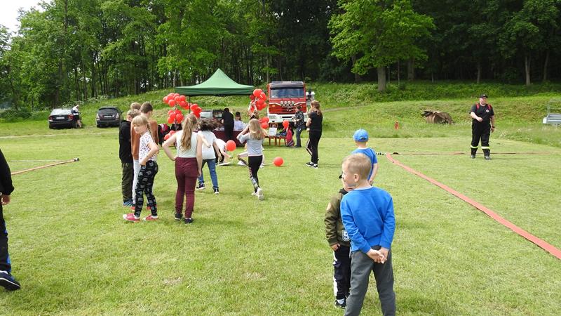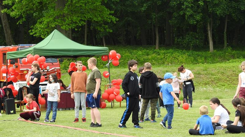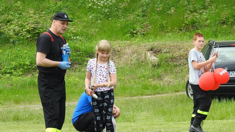Drawieńscy strażacy przygotowali tor przeszkód, w którym uczestniczyli uczniowie klas 1-8 Szkoły Podstawowej w Drawnie oraz gościnnie dzieci z Recza.