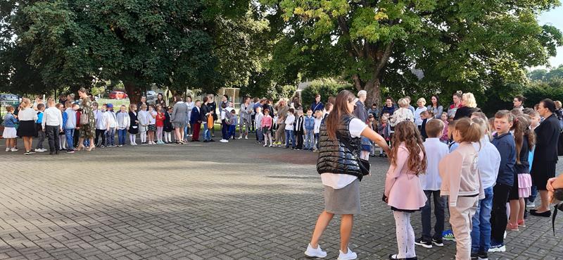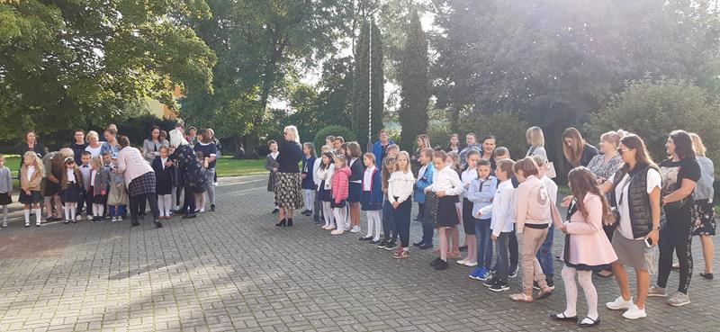 W środę 1 września rozpoczęliśmy nowy rok szkolny 2021/2022. Przyjemna pogoda pozwoliła, by wspólne spotkanie uczniów klas I-III o godz 9.00, klasy IV-VI -godz. 9.30 i uczniowie klas VII-VIII godz 10.00 odbyło się na szkolnym dziedzińcu. W rozpoczęciu roku uczestniczyli również goście- burmistrz Drawna pan Andrzej Chmielewski oraz sekretarz Urzedu Gminy - pani Mariola Kowalewska.