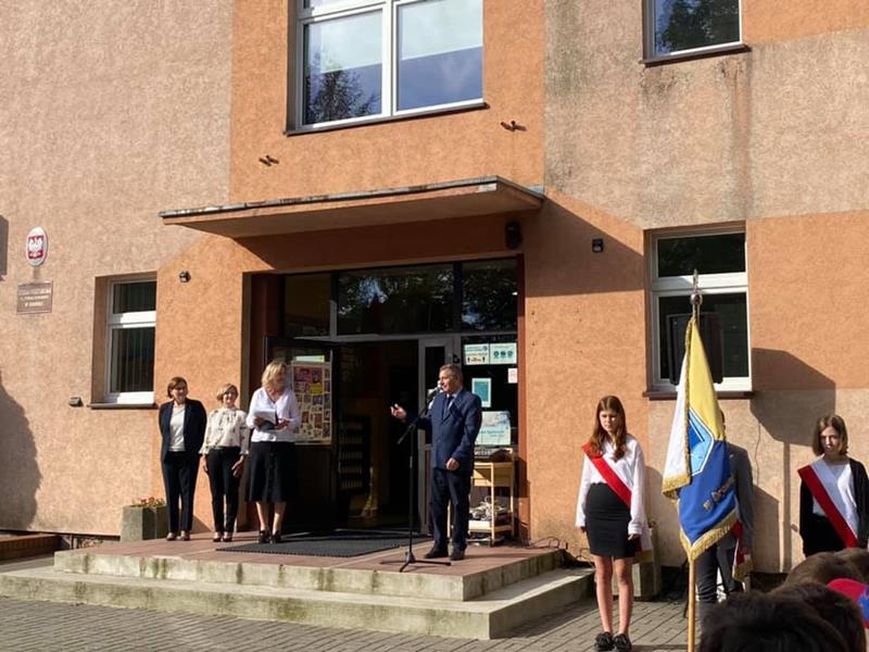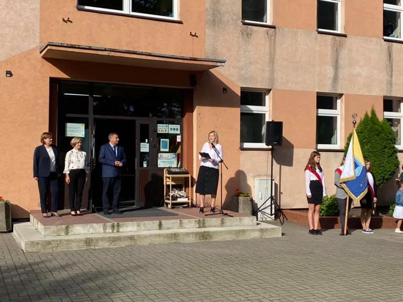 Pani dyrektor Joanna Markiewicz w swoim przemówieniu serdecznie wszystkich powitała, ciepłe słowa kierując w stronę uczniów i życząc im jak najlepszych ocen, wielu sukcesów oraz owocnego odkrywania i pogłębiania swoich zainteresowań. Ponadto przekazała informacje na temat organizacji pracy w nowym roku szkolnym, przedstawiła wychowawców poszczególnych klas. Wspomniała także o przeprowadzonych remontach, możliwych dzięki zaangażowaniu organu prowadzącego, nastepnie oddała glos panu burmistrzowi, który również życzył sukcesów w nauce i wyraził nadzieje , że bedziemy kontynuować naukę stacjonarnie. Na zakończenie uroczystości Pani Dyrektor przypomniała o zachowaniu bezpieczeństwa.