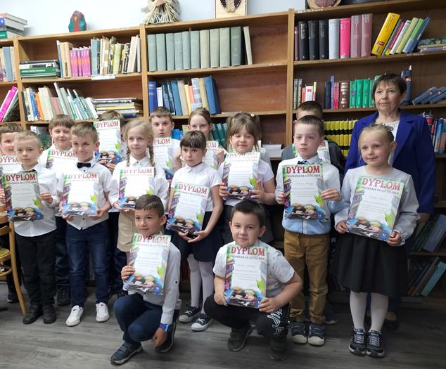 Głównym celem uroczystości było zachęcenie najmłodszych uczniów do korzystania z biblioteki szkolnej, wypożyczania książek oraz nieustannego rozwijania umiejętności czytania.