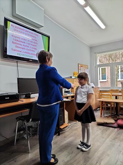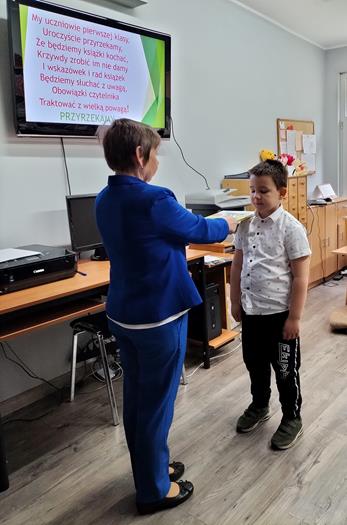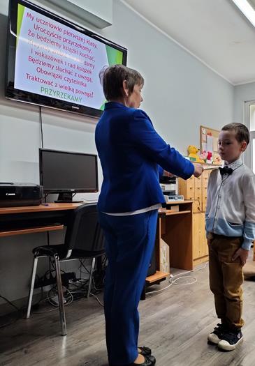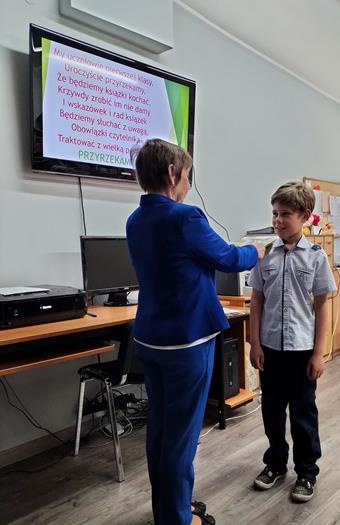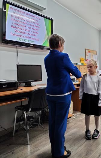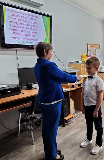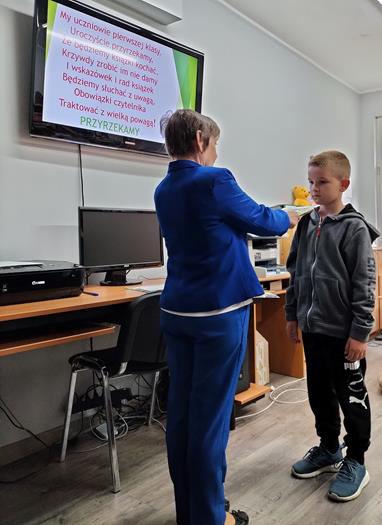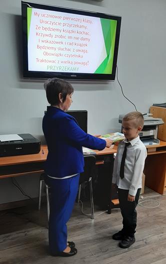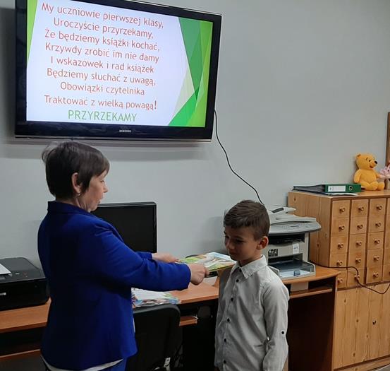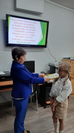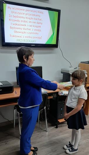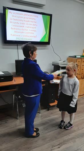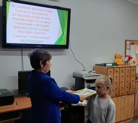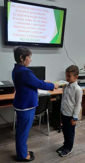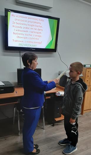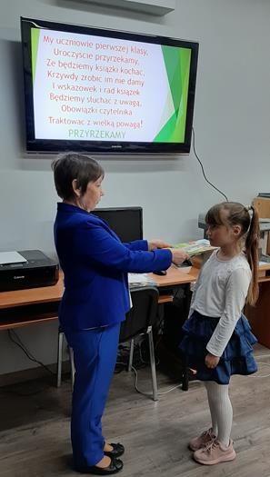 Po takim wprowadzeniu przyszli czytelnicy złożyli uroczyste przyrzeczenie, że będą kochać i szanować książki, korzystać z ich mądrości i sumiennie wypełniać obowiązki czytelnika.