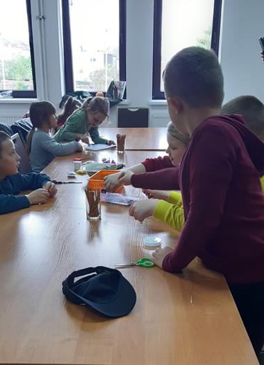 W tygodniu bibliotek, Biblioteka Publiczna zorganizowała warsztaty rękodzieła, na które zaprosiła uczniów klas I - III.