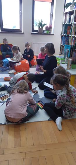 Z okazji Dnia Głośnego Czytania uczniowie klasy Ia uczestniczyli w spotkaniu z panią Małgosią, które zorganizowała Biblioteka Publiczna w Drawnie.