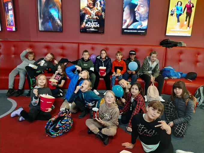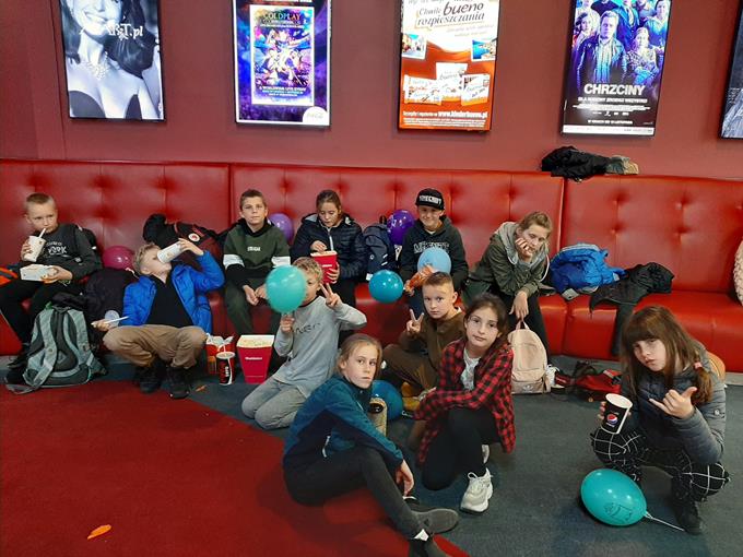 Następnie po obiedzie obejrzeliśmy seanse w Multikinie. Uczniowie z klasy 4 raczyli się filmem animowanym pt. „Tedi i Szmaragdowa Tablica” a młodzież z klasy 7 przeżywała trudne emocje podczas filmu pt. „Johnny”.