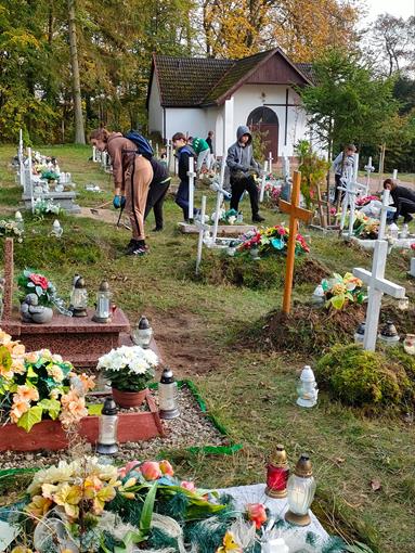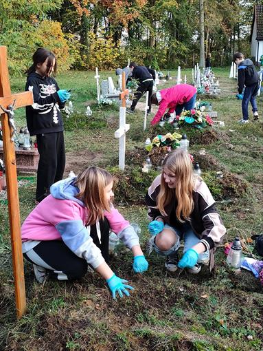 W związku ze zbliżającą się uroczystością Wszystkich Świętych oraz Zaduszek, 27 października uczniowie działający w Szkolnym Kole Wolontariatu oraz Samorządzie Uczniowskim wraz z rodzicami i opiekunami wspólnymi siłami posprzątali groby dzieci znajdujące się na cmentarzu w Drawnie. Akcja miała na celu propagowanie postawy szacunku wobec osób, które już odeszły z tego świata oraz wzbudzenie krótkiej refleksji nad przemijalnością i kruchością ludzkiego życia.