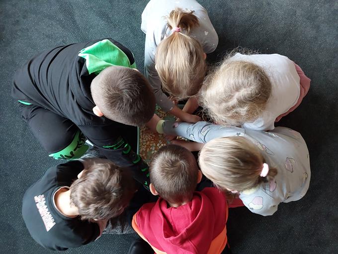Również do naszej szkoły zawitała bajkowa atmosfera. Przypomnieliśmy sobie bajki, które towarzyszą nam w dzieciństwie. Dzieci przebywające na świetlicy wzięły udział w zabawach bajkowych, układały puzzle, odgadywały zagadki i zamieniali się w Kopciuszka rozdzielając groch od fasolek.