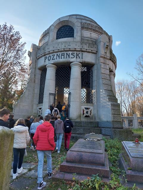 Pierwszy dzień wycieczki po Fabrycznej Łodzi to Park Ocalałych, dedykowany Żydom ocalałym z getta. Na wzgórzu tego parku wzniesiono pomnik Jana Karskiego, emisariusza polskiego państwa podziemnego. Zwiedziliśmy Muzeum Stacja Radegast gdzie prezentowana jest mapa Getta Litzmannstadt, następnie udaliśmy się na cmentarz żydowski. Wśród wielu nagrobków mogliśmy zobaczyć pomnik rodziców Juliana Tuwima, polskiego poety żydowskiego pochodzenia, na którym widnieje bardzo wzruszający fragment wiersza skierowany do matki. Widzieliśmy również nagrobek rodziców Artura Rubinsteina, polskiego pianisty.