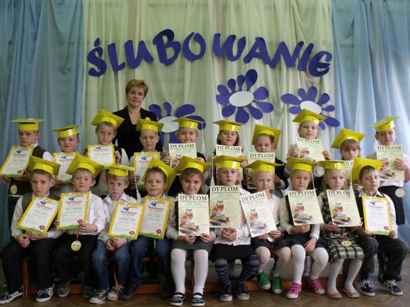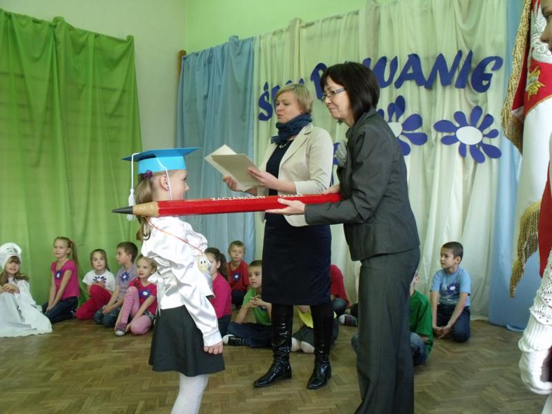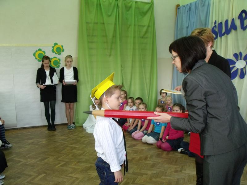 Tradycyjnie po ślubowaniu każdy pierwszak został pasowany przez panią dyrektor szkoły zaczarowanym ołówkiem i otrzymał od wychowawcy pamiątkowy dyplom.