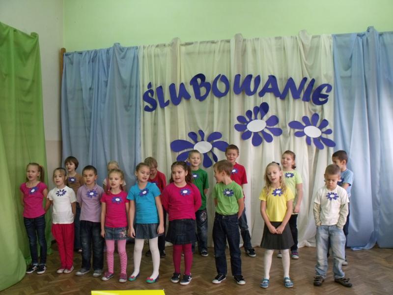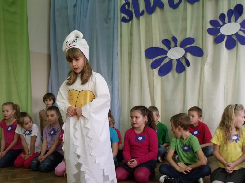 Część artystyczną przygotowali uczniowie klasy IIc z wychowawczynią M. Lewandowską i Samorządem Szkolnym. Były wiersze i piosenki w wykonaniu starszych kolegów, zawitał również szkolny duszek Aplaus, który dodał pierwszakom otuchy i przyglądał się całej uroczystości.