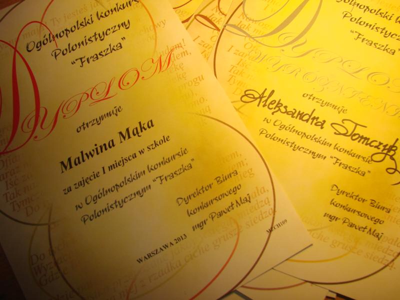 Pod koniec października 2012 roku uczennice koła polonistycznego klas szóstych wzięły udział w Ogólnopolskim Konkursie Polonistycznym „Fraszka”, aby zmierzyć się z innymi uczestnikami , z całej Polski.