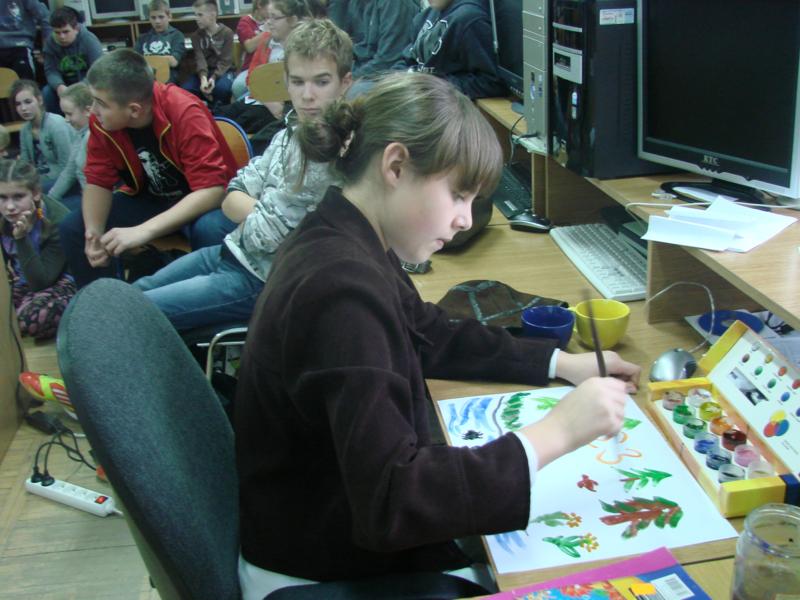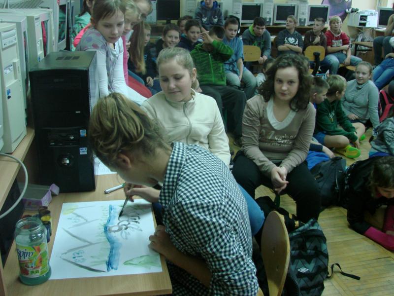 Autor "Puszczy jodłowej" słynął z tego, że potrafił w doskonały sposób opisać otaczające go krajobrazy. Chcieliśmy to sprawdzić i dlatego wybrani uczniowie z poszczególnych klas mieli za zadanie namalować to, co usłyszeli. W tym zadaniu wzięli udział następujący uczniowie: A. Ciosmak, A. Piotrowski, K. Polińska, N. Wróblewska, W. Milewska i Z. Lewandowska. Oto fragment tekstu, który był odczytany i obrazy, które zobaczyli w swojej wyobraźni w/w uczniowie.