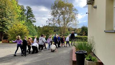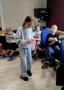 Niektóre Klasy Maluchów wprawdzie już trochę spoważniały, ale i tak musiały poćwiczyć współpracę w grupie (bardzo przydał się pomocnik z Przedszkola "Gienek")😂....