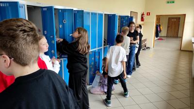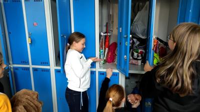 Te same Łobuziaki, z czwartej klasy, bardzo dbają o swoją Szkołę - raz na jakiś czas sami sprzątają swoje szafki...