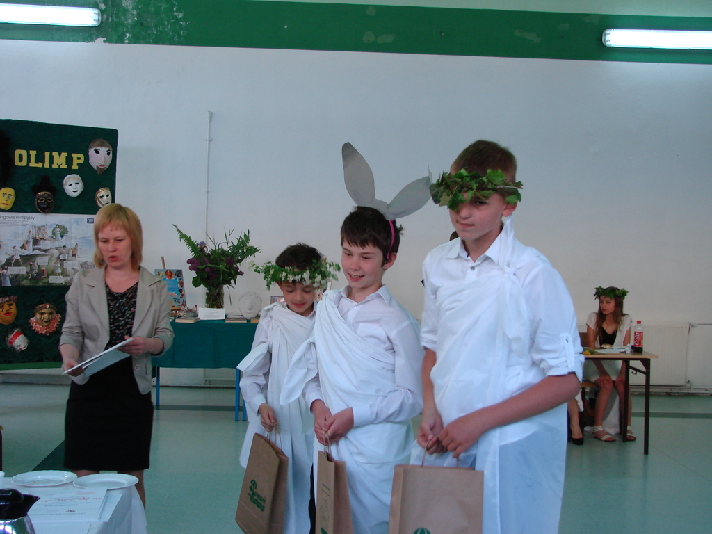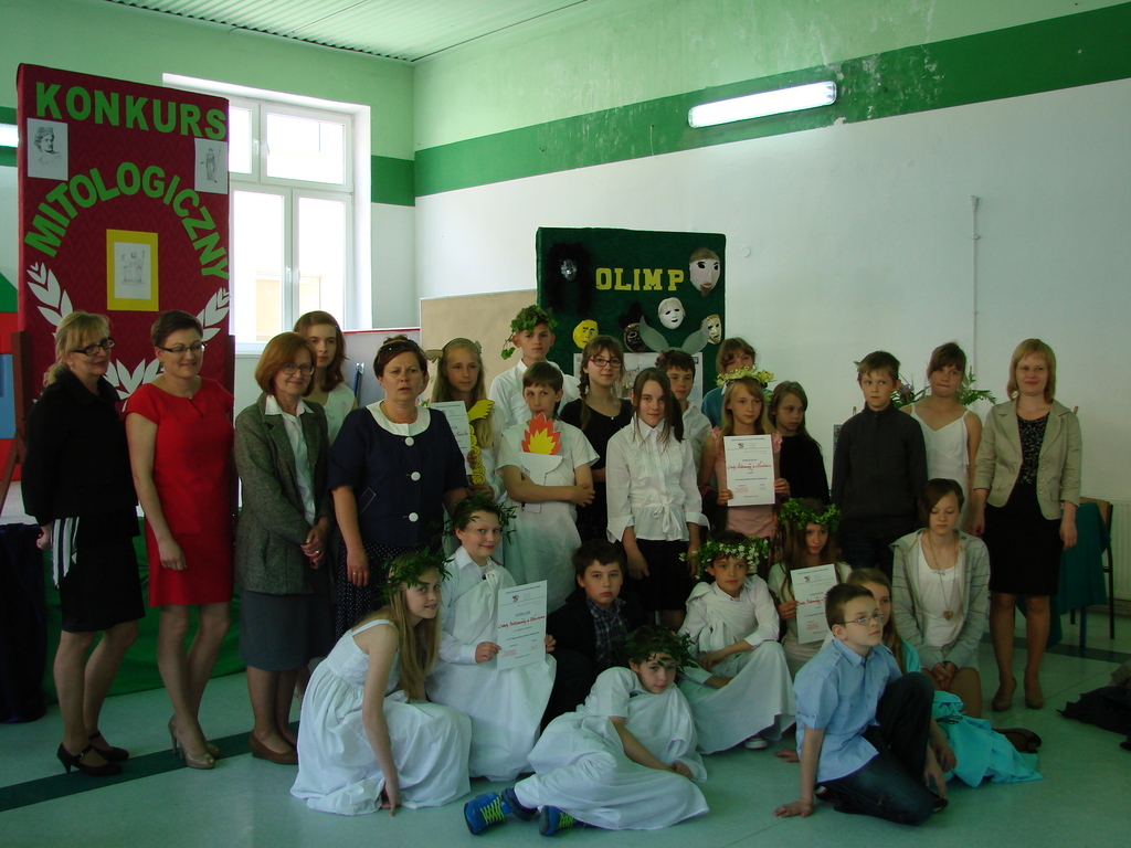 Każda drużyna poza konkursem musiała przygotować 5 - minutową scenkę dramową związana z mitologią. Nasi uczniowie przygotowali mit o królu Midasie. Na koniec nastąpił dugo oczekiwany moment, czyli nagrodzenie zwycięzców.