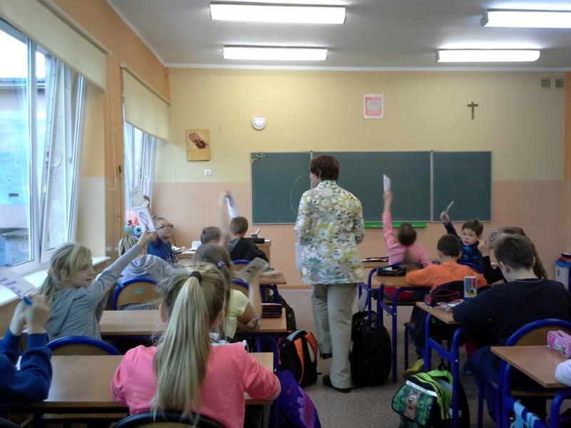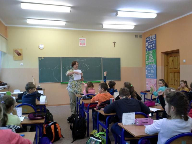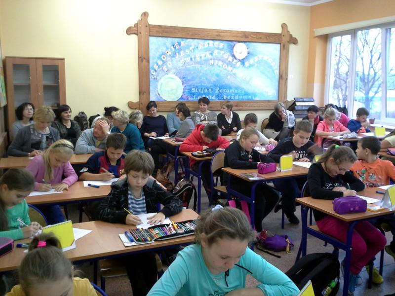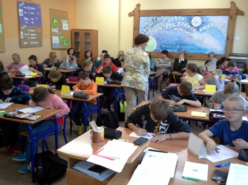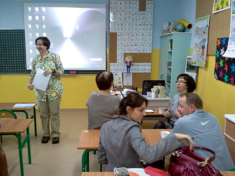 W naszej szkole jak przystało na uczestników „ Szkoły uczącej się” nie tylko uczniowie się uczą. Nauczyciele systematycznie uczestniczą w różnorodnych formach doskonalenia się. Jedną z nich były sześciogodzinne warsztaty dla nauczycieli, prowadzone przez panią Barbarę Rakicką, na temat „ Pytania, które uczą myśleć”, które odbyły się 15 listopada 2013r. Rozpoczęły się lekcją pokazową w klasie IV b, na której zostały zastosowane techniki motywujące uczniów do zadawania pytań. Po lekcji na warsztatach ćwiczyliśmy konstruowanie odpowiednich pytań, które służą rozwojowi ucznia, jego kreatywnemu spojrzeniu na naukę i świat. Przypomnieliśmy sobie jak tworzyć i wykorzystywać na lekcji pytania kluczowe, przećwiczyliśmy techniki, które pomagają zmotywować uczniów do zadawania pytań. Nasze uczestnictwo w szkoleniach jest dowodem na to, że człowiek powinien się doskonalić przez całe życie.