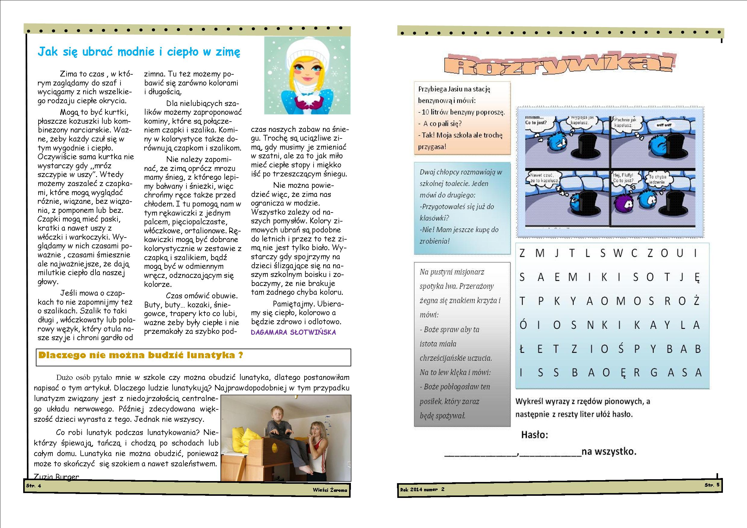 Koło dziennikarskie pracuje bardzo szybko i wytrwale. W ciągu tygodnia powstał kolejny numer naszej gazetki. Oto ona.